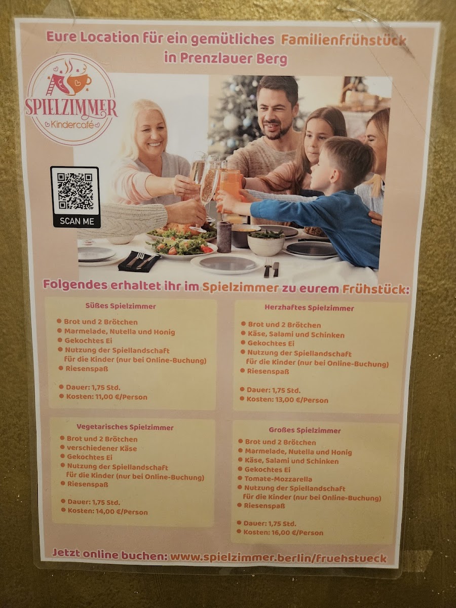 Parents can enjoy quality coffee, from classic Espresso (€2.80) to rich Chai Latte (€4.30), while kids savor tasty treats like sandwiches and fruit plates. The vibrant play areas ensure a fun experience for children aged 1.5 to 6, making every visit enjoyable. With its warm atmosphere and engaging activities, Kindercafé Spielzimmer promises to be a memorable outing for families.