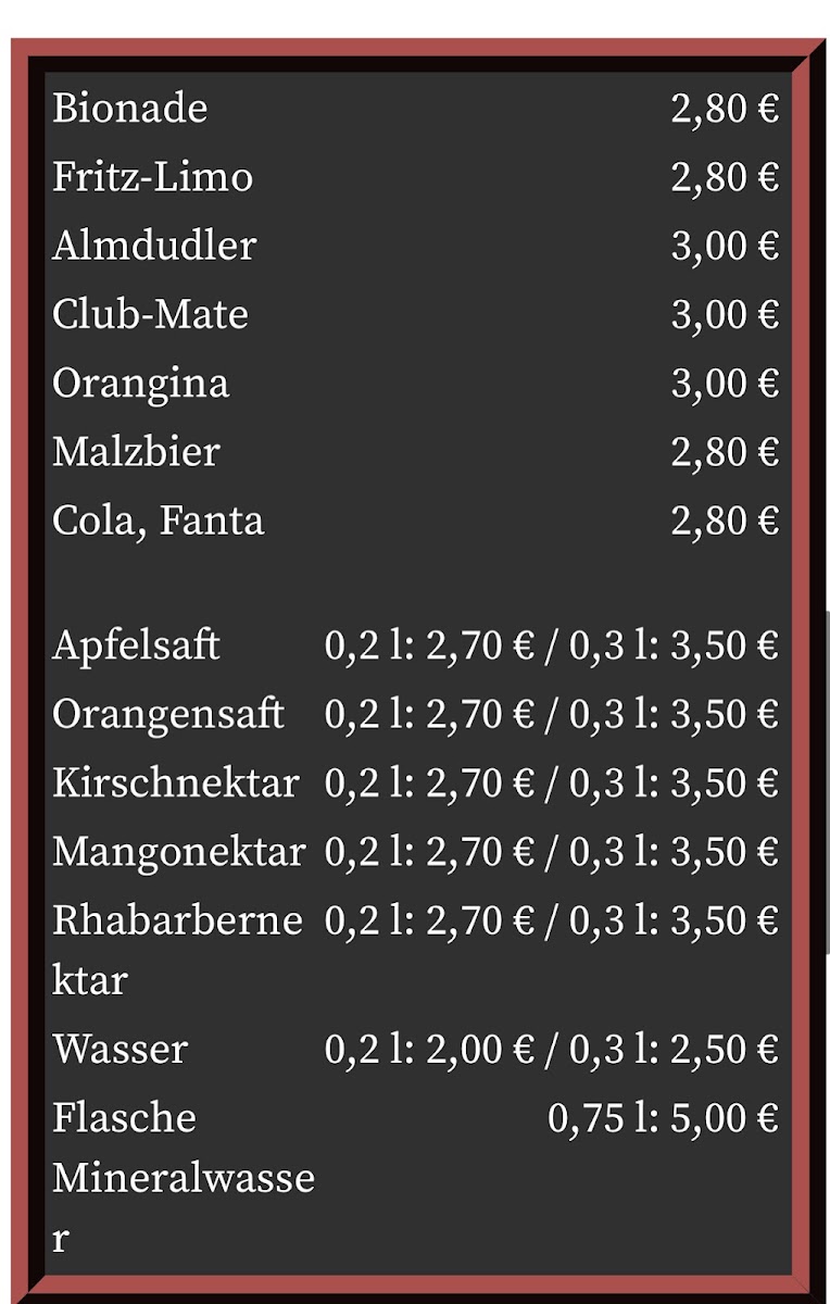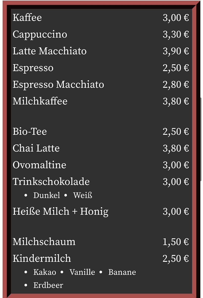 The menu offers a variety of enticing breakfast options, like the Süßes Spielzimmer (€11.00) featuring an assortment of breads and preserves, or the heartier Herzhaftes Spielzimmer (€13.00) with cheeses and meats. For lighter snacks, try their fresh Belgian waffles topped with your choice of sweet toppings for just €4.50.